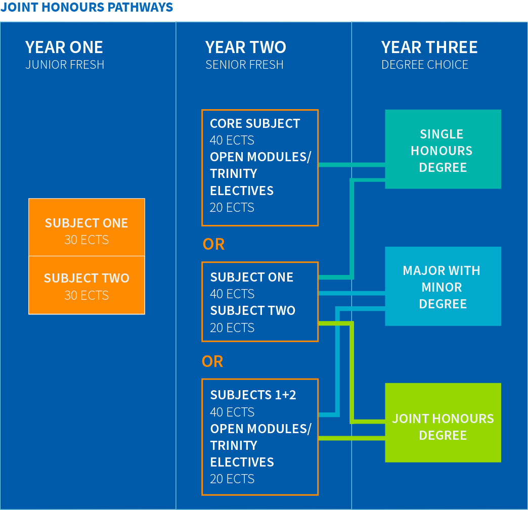 1. Keep both subjects equally weighted (20 ECTS CREDITS each), and add Trinity Electives and Open Modules (20 ECTS Credits)