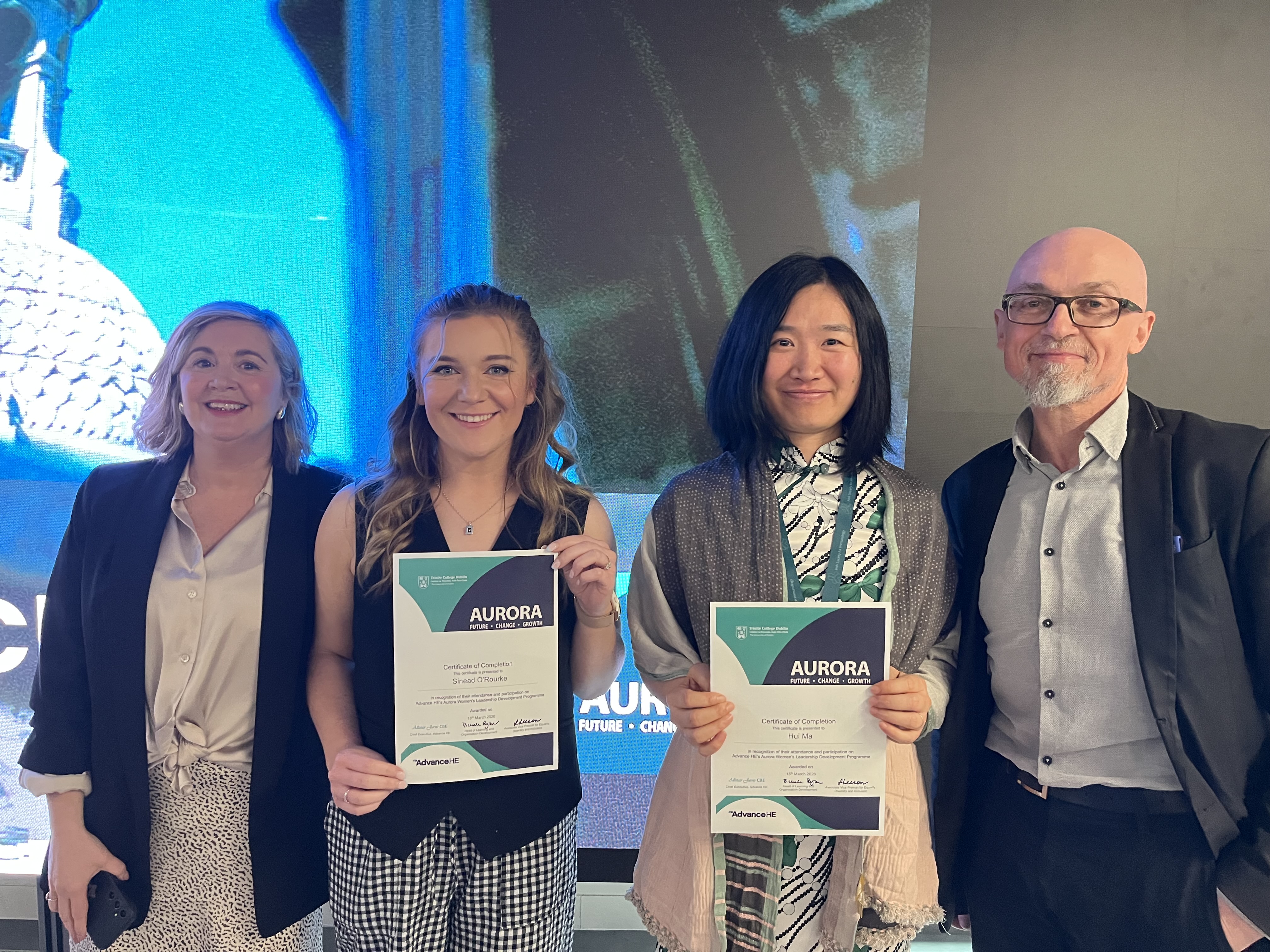 Congratulations to Sinead O’Rourke (of Aisling Dunne’s group) and Fay Ma (of Ed Lavelle’s group) from the School of Biochemistry and Immunology who graduated on 18 March from the Aurora Women in Leadership Programme.