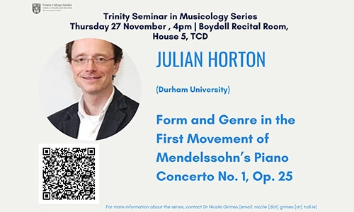 'Form and Genre in the First Movement of Mendelssohn’s Piano Concerto No. 1, Op. 25'. A talk by Julian Horton on Thursday 05 February 2026 at 16.00 in the Boydell Recital Room, House 5, TCD.