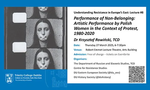 Dr Krzysztof Rowiński (TCD) will give a lecture as part of the ‘Understanding resistance in Europe’s east’ public lecture series on Thursday 27 March 2025 in the Robert Emmet lecture theatre, Arts Building, TCD.