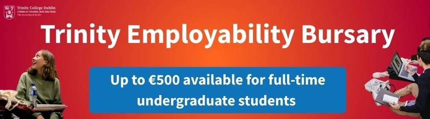 The Trinity Employability Bursary is designed to give undergraduates the financial support they need to take up career‑building opportunities that might otherwise be out of reach. Whether you’ve secured an internship, a shadowing opportunity, a project, or relevant voluntary work in Ireland, abroad, or virtually, this bursary can help reduce the financial pressure.