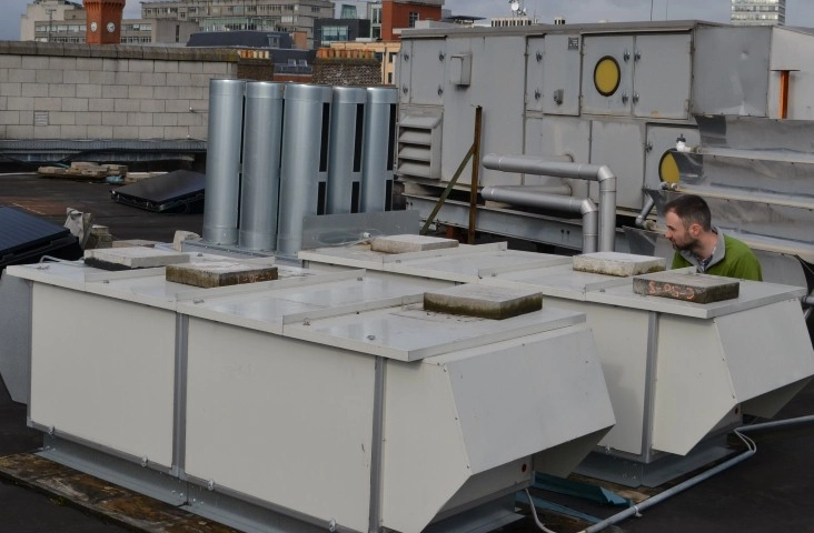 The rooftop laboratory provides a rooftop space for members of the Energy Research Group and the Structures Research Group. It provides a testbed for examining efficiencies of building ventilation equipment and renewable energy systems (e.g. solar PV panels), and a facility to carry out experiments that examine the effects of weathering on concrete and other building materials.
