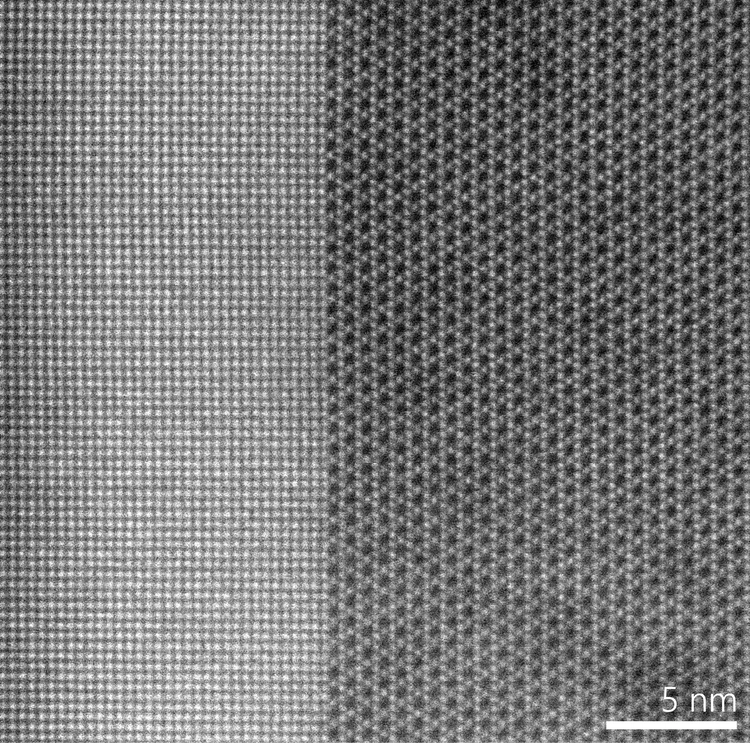 HAADF STEM images of WO3 in its three phases, hydrated-orthorhombic, hexagonal and monoclinic, respectively