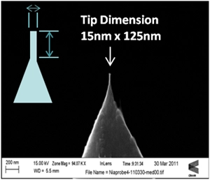 The technology solution takes a low resolution diamond tip and creates a high resolution tip from it- using diamond patterning technology.