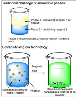 This technology offers new approaches for initiating phase transfer reactions using an external magnetic field. This invention enables development of new composite materials by using magnetically assisted trans-phase reagent delivery and also allows magnetically triggered reaction initiation or catalysis (e.g. polymerisation, condensation, etc.) at aqueous/organic interfaces.