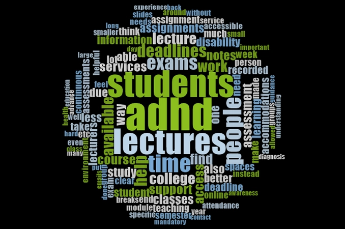 - focus groups with student services (Counselling, College Health Centre) to determine engagement with students with ADHD and to provide a triangulation of the data. The principal themes that emerged were: