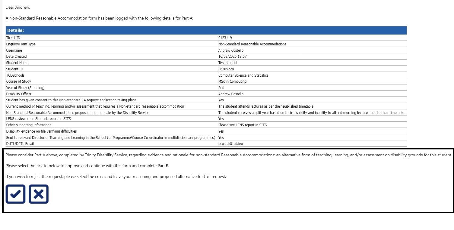 Below are the steps required to review and respond to a non-standard reasonable accommodation application request sent to the DUTL/DPTL.