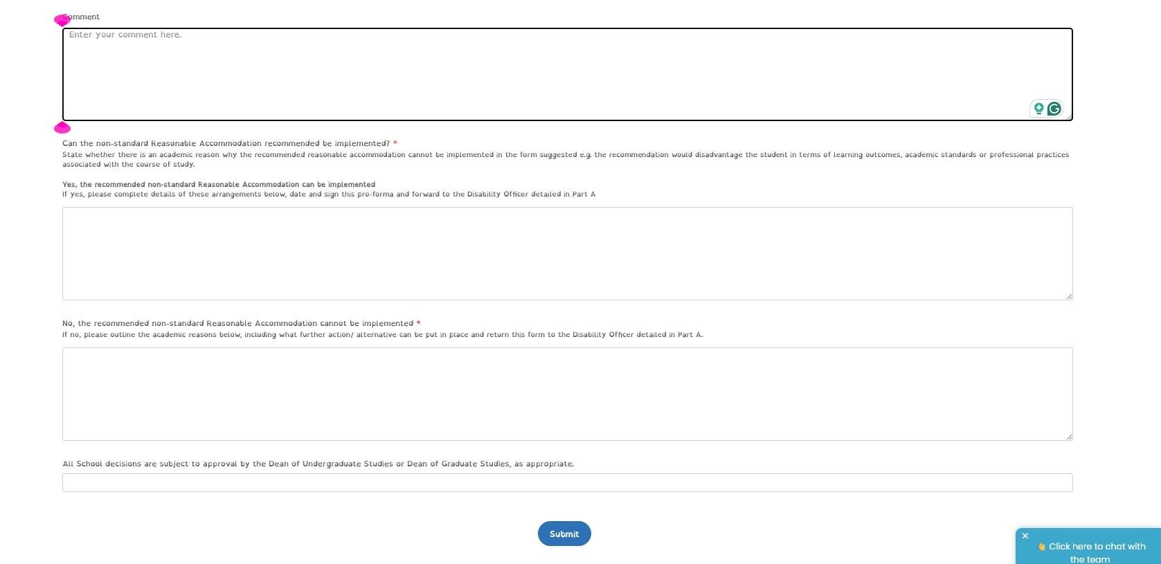 Your reply will be forwarded to the assigned Disability officer via the HALO CRM, and from this, the application will be forwarded to the Student Cases team in the Academic Registry for review and consultation with the Senior Lecturer for the final decision regarding the request.
