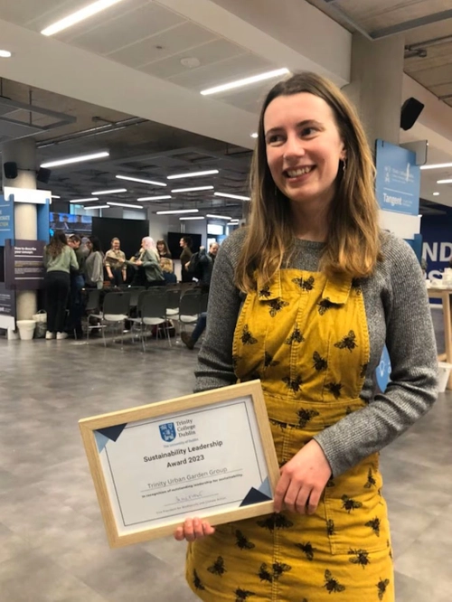 Eleanor Mullen, Trinity graduate and sustainability leader, innovates in sustainable materials and fosters environmental awareness through research and community initiatives.