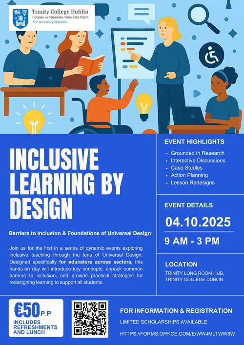 Join us on October 4th at Trinity College Dublin for a hands-on CPD event: Inclusive Learning by Design – Barriers to Inclusion & Foundations of Universal Design.