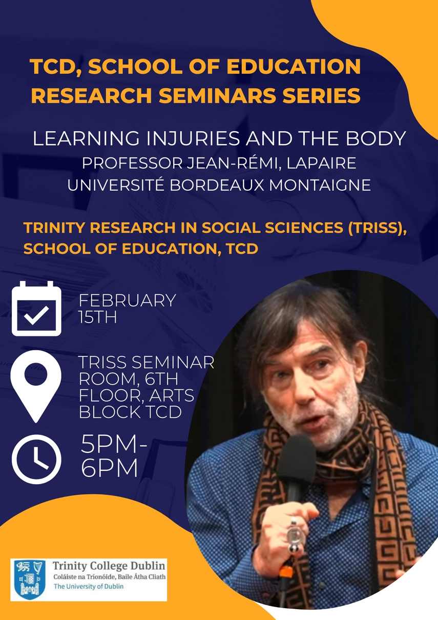 Thursday 15/02/2024, 5-6pm, at Trinity Research in Social Sciences (TRISS), School of Education, TCD.