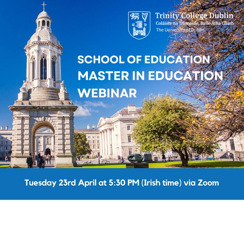 Master in Education Virtual Information Session, Tuesday 23rd April at 5:30 PM (Irish time).