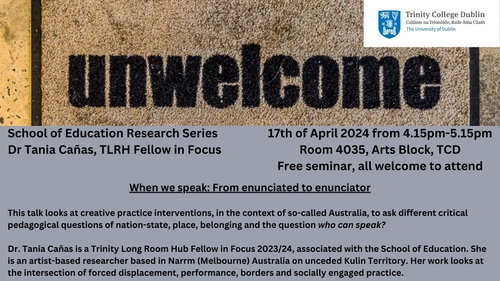 Free seminar: When we speak: from enunciated to enunciator. School of Education Research Serires, Dr Tania Canas, TLRH Fellow in Focus.