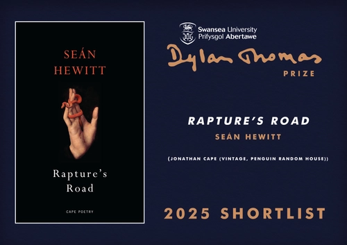 Dr Seán Hewitt's poetry collection "Rapture's Road" has been shortlisted for the world’s largest & most prestigious literary award for young writers, the Swansea University Dylan Thomas Prize.