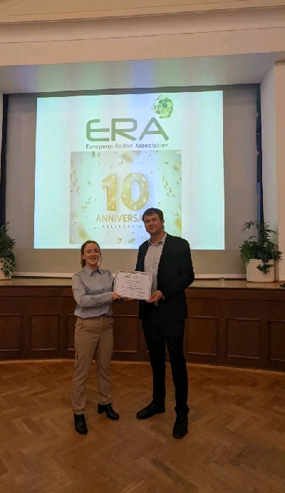 Email earth@tcd.ieCongratulations to Méabh Banríon, who was presented with an award for her "outstanding recent research" at the annual European Radon Association meeting in Prague on September 21st