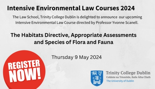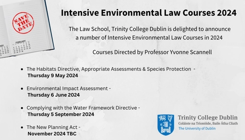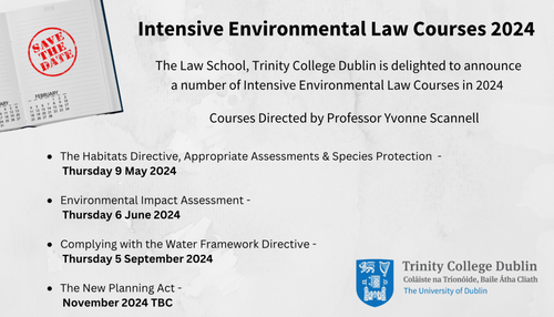 The Law School, Trinity College Dublin is delighted to announce a number of Intensive Environmental Law Courses 2024, directed by Prof. Yvonne Scannell.