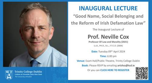 The Inaugural Lecture of Prof. Neville Cox, Professor of Law and Morality (2021) - "Good Name, Social Belonging and the Reform of Irish Defamation Law".