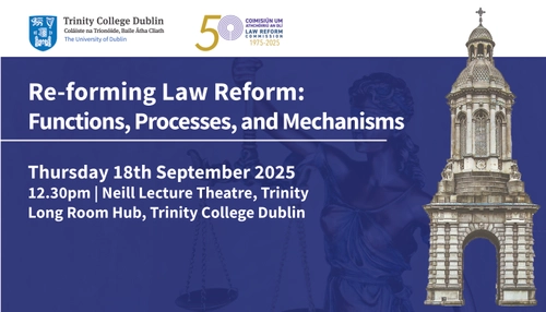 Join us on Thursday 18 September 2025 at Trinity College Dublin for a conference marking the Law Reform Commission’s 50th Anniversary.