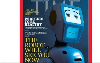 Stevie the robot enjoys pride of place on TIME’s new front cover