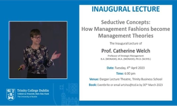 Professor Catherine Welch will deliver her Inaugural Lecture on Tuesday 4th April at 6pm in the Dargan Lecture Theatre, Trinity Business School.