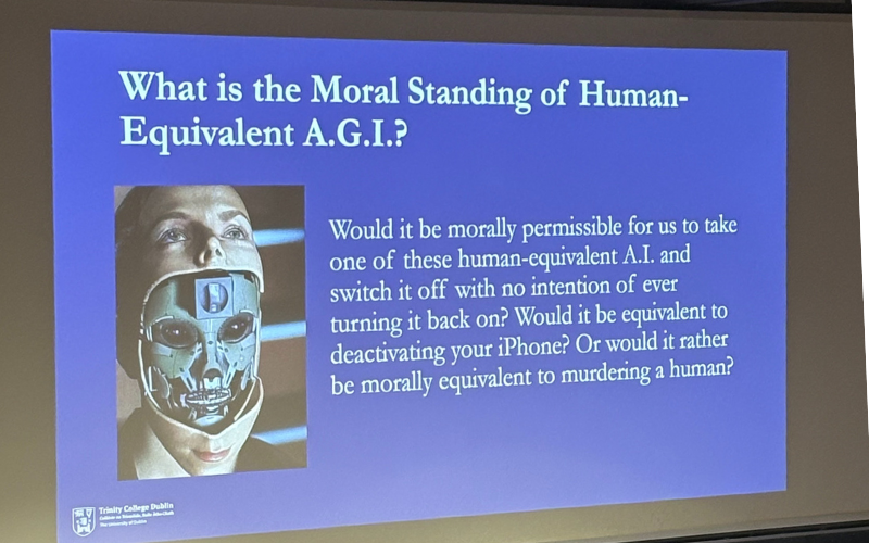 That was the focus of Dr Will Ratoff’s lecture, “Machines Like Us? The Ethics of Artificial General Intelligence,” delivered to a packed JM Synge Theatre on Thursday, 2 October. Dr Ratoff explored the ethical and social challenges posed by machines that could one day equal, or surpass, human intelligence, from their use in warfare to their role in our personal lives.