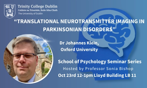 New guest lecture: "Translational Neurotransmitter Imaging in Parkinsonian Disorders" by Dr Johannes C Klein, Oxford Parkinson’s Disease Centre, University of Oxford on Oct 23rd at 12-1pm, Lloyd Building, LB 11