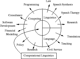 The following picture attempts to give some idea of what computational linguistics is about