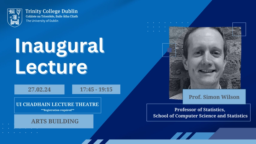 The Faculty of STEM invites you to Prof Simon Wilson's inaugural lecture on “Being certain about your uncertainty: a brief history of probability, risk and the foundations of data science” on 27th Feb 2024 at 5.45pm – 7.15pm (in person only) in the Ui Chadhain lecture theatre, Arts Building, Trinity College Dublin.