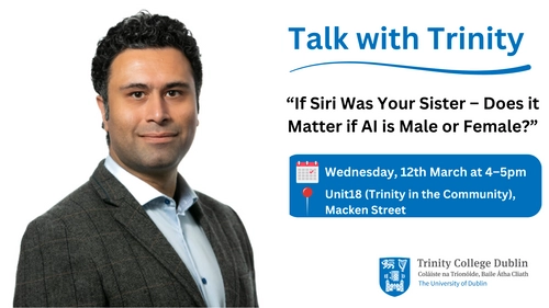Professor Taha Yasseri will be presenting "If Siri Was Your Sister – Does it Matter if AI is Male or Female?" on Wednesday, 12th March.
