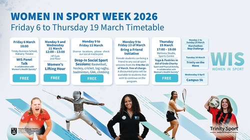 Our expanded programme of events for 'Women in Sport' week from Friday 6 to Thursday 19 March 2026 includes something for everyone - from a panel talk to women's lifthing hour and drop-in social sport sessions!