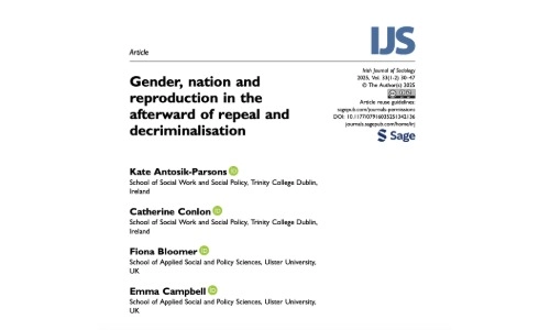 Dr Kate Antosik-Parsons and Dr Catherine Conlon are excited to announce the publication "Gender, nation and reproduction in the afterward of repeal and decriminalisation" in the Irish Journal of Sociology