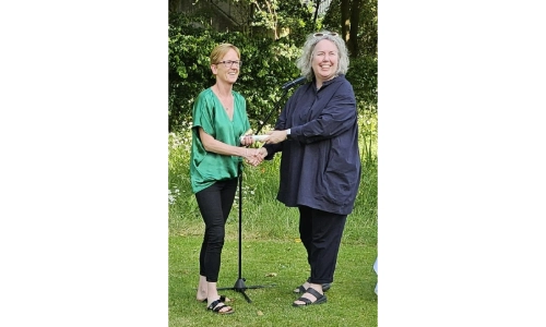 Congratulations to Prof Stephanie Holt on being presented with a Trinity Excellence in Teaching School Award by Provost Linda Doyle at a celebration of awardees in the Provost's garden.
