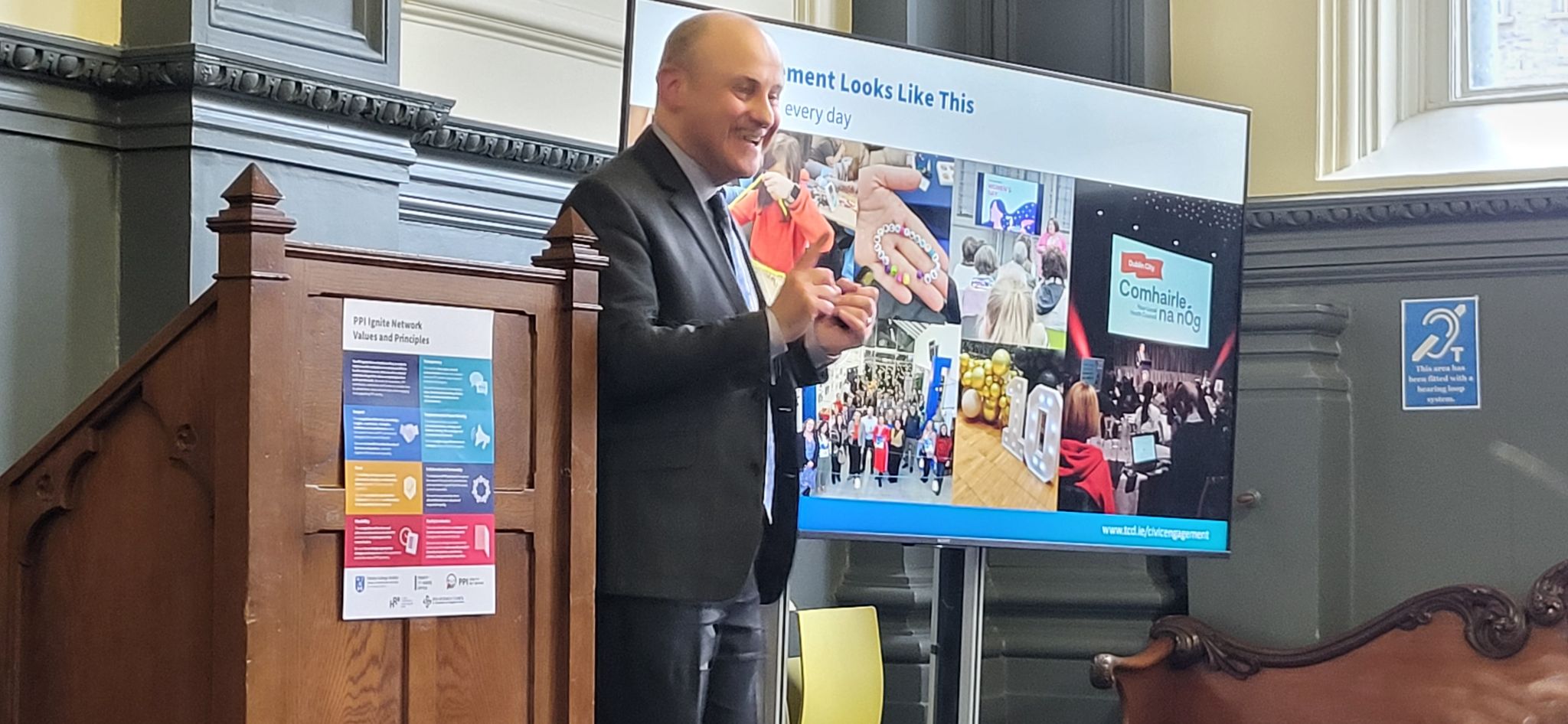 Attendees also heard from Professor Sinead Ryan, Dean of Research, who reaffirmed the importance of PPI within Trinity’s research strategy, and from Declan Meenagh, PPI Co-Lead, who spoke about the future direction of PPI at Trinity and outlined plans for the next five years.