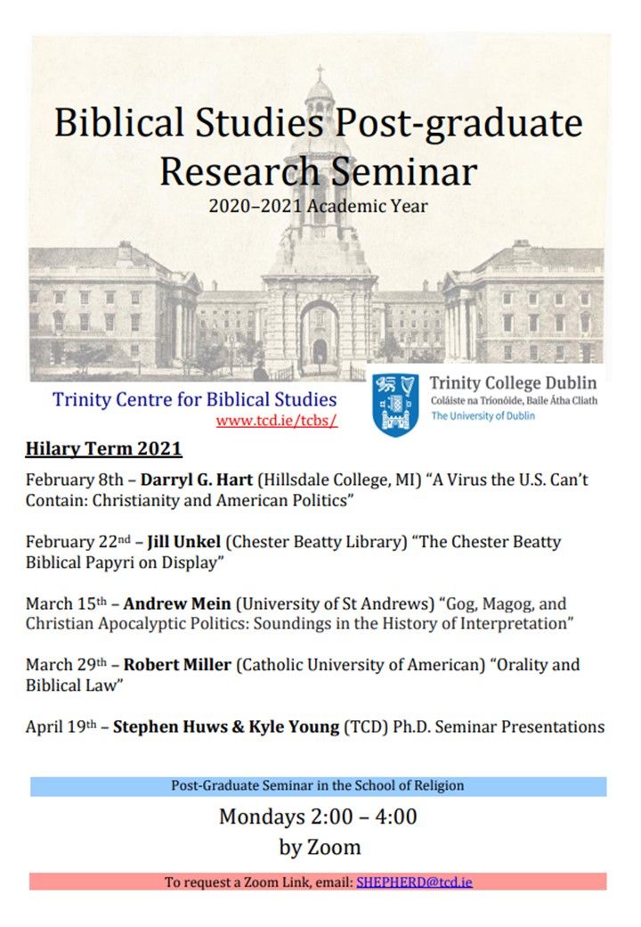 Email woldb@tcd.ieArchived Research Seminar 2020-21. Michaelmas Term 2020 and Hilary 2021