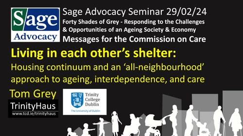Tom Grey from TrinityHaus spoke about ‘Housing continuum and an ‘all-neighbourhood’ approach to ageing, interdependence, and care’. Building on the collaborative research conducted by TrinityHaus in the areas of housing for older