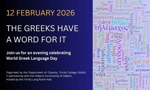 Join us to celebrate World Greek Language day organised by the Department of Classics, School of Histories and Humanities TCD, the Hellenic Community of Ireland and the Irish Institute of Hellenic Studies at Athens.
