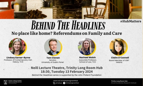 Our ‘Behind the Headlines’ panel discussion will address upcoming referendum proposals and the meanings of ‘home’ in contemporary Ireland.